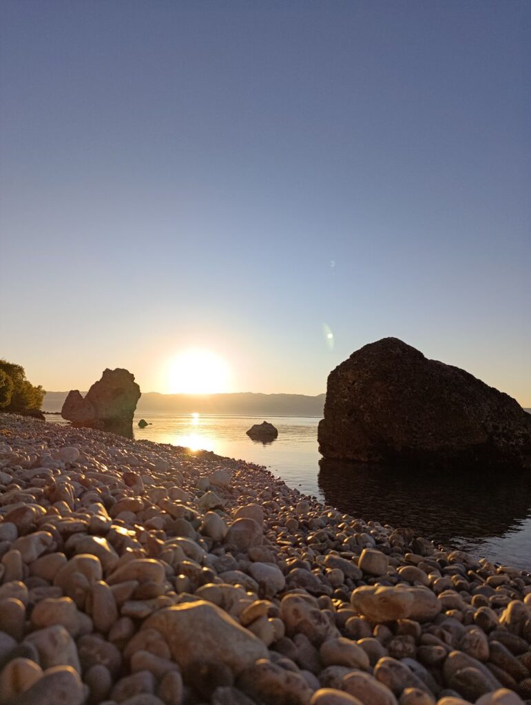 A múzeumtól egy 5 kilométernyi vezetés után elénk tárul a “balkáni Saint-Tropez”. Az apró halászfalu a legjobb hely, ha pihenni és töltődni szeretnénk. Meredek, kanyargós, lépcsős utcákon vezet le az út a fehér köves partra, ahol egy szempillantás alatt tengerparti érzésünk támadt, mikor ott jártunk. Egy szeptember közepi hétköznapon szinte csak miénk volt a teljes szakasz.