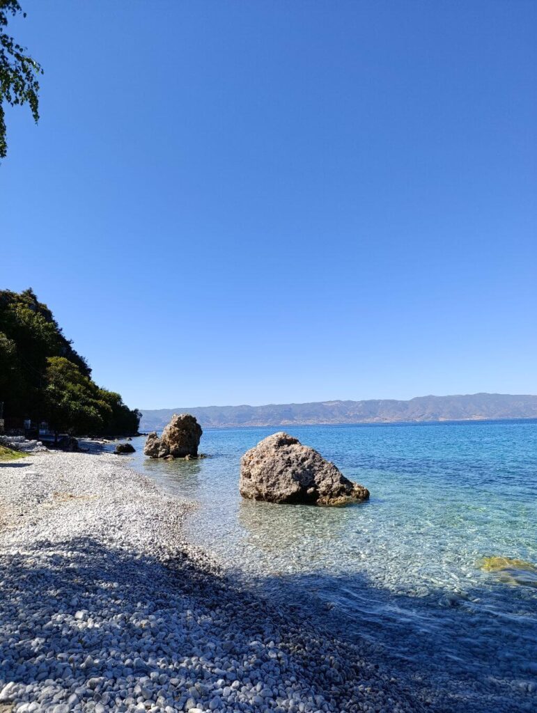 A víz különösen tiszta, a part mentén pedig hangulatos éttermek sorakoznak, ahol friss pisztrángot és helyi bort kínálnak. Tökéletes hely egy fürdőzéshez vagy egy naplementés vacsorához.