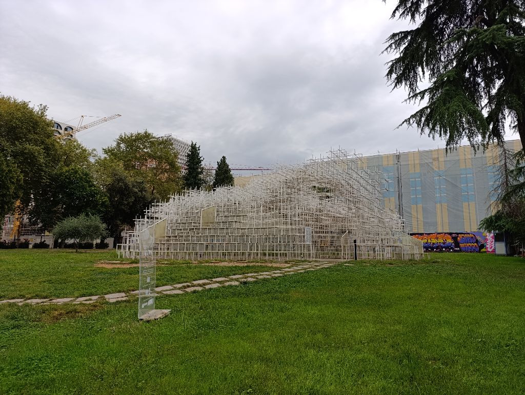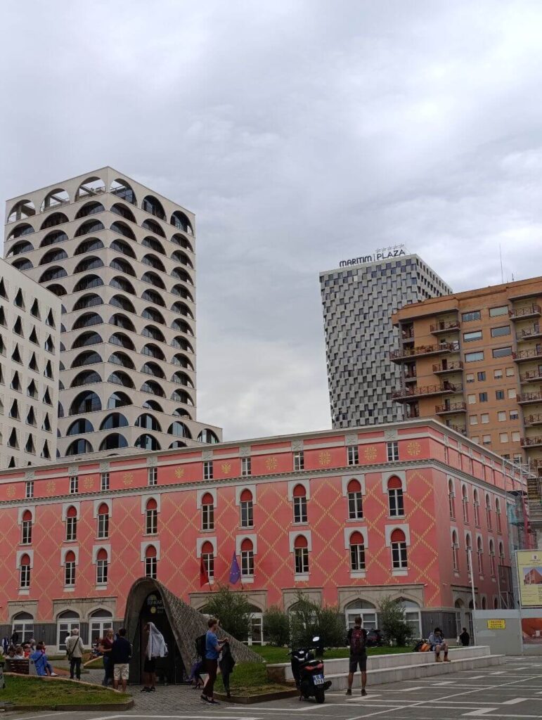 Ez az épület egyszerre a város legellentmondásosabb és legikonikusabb látványossága. 1988-ban épült Enver Hoxha diktátor tiszteletére, halála után azonban gyorsan elvesztette funkcióját. Évtizedekig omladozott, graffitikkel borítva állt a város közepén.
