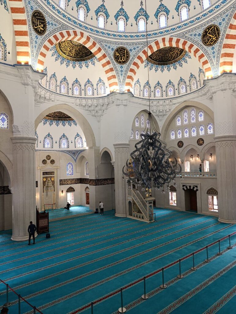 A mecset belső díszítése hagyományos oszmán motívumokat idéz, miközben modern elemeket is ötvöz. Nemcsak imahely, hanem kulturális és közösségi tér, ahol könyvtár, oktatási központ és múzeum is működik.